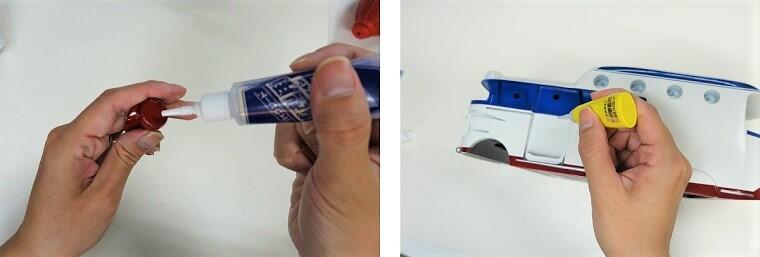(右)すぐに固定したい細部には瞬間接着剤