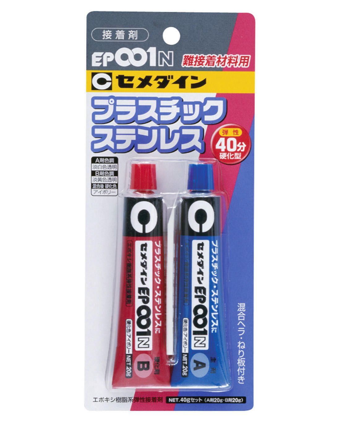 - エポキシ樹脂系接着剤「ハイスーパー5」…2液混合タイプの接着剤です。位置調整の時間を確保しつつ、短時間で強固に接着したい場合にオススメです。