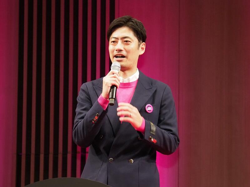 あいさつをする小国さん。deleteCの活動は、ステージ4の乳がんを患いながらも「がんを治せる病気にする」という夢をあきらめなかった、QOLデザイナー・中島ナオさんの思いを引き継ぐ形で大きく発展しています