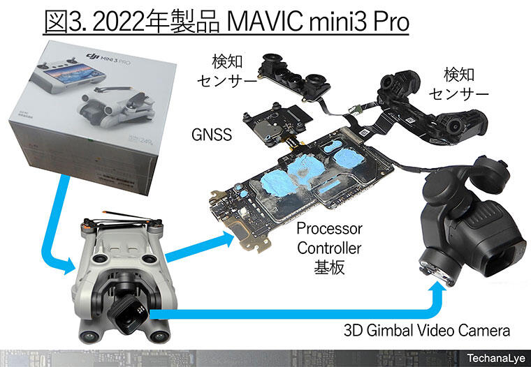 図3は、世界一のドローンメーカー、中国DJI社の2022年の最新製品MAVIC mini3 Proの様子である。