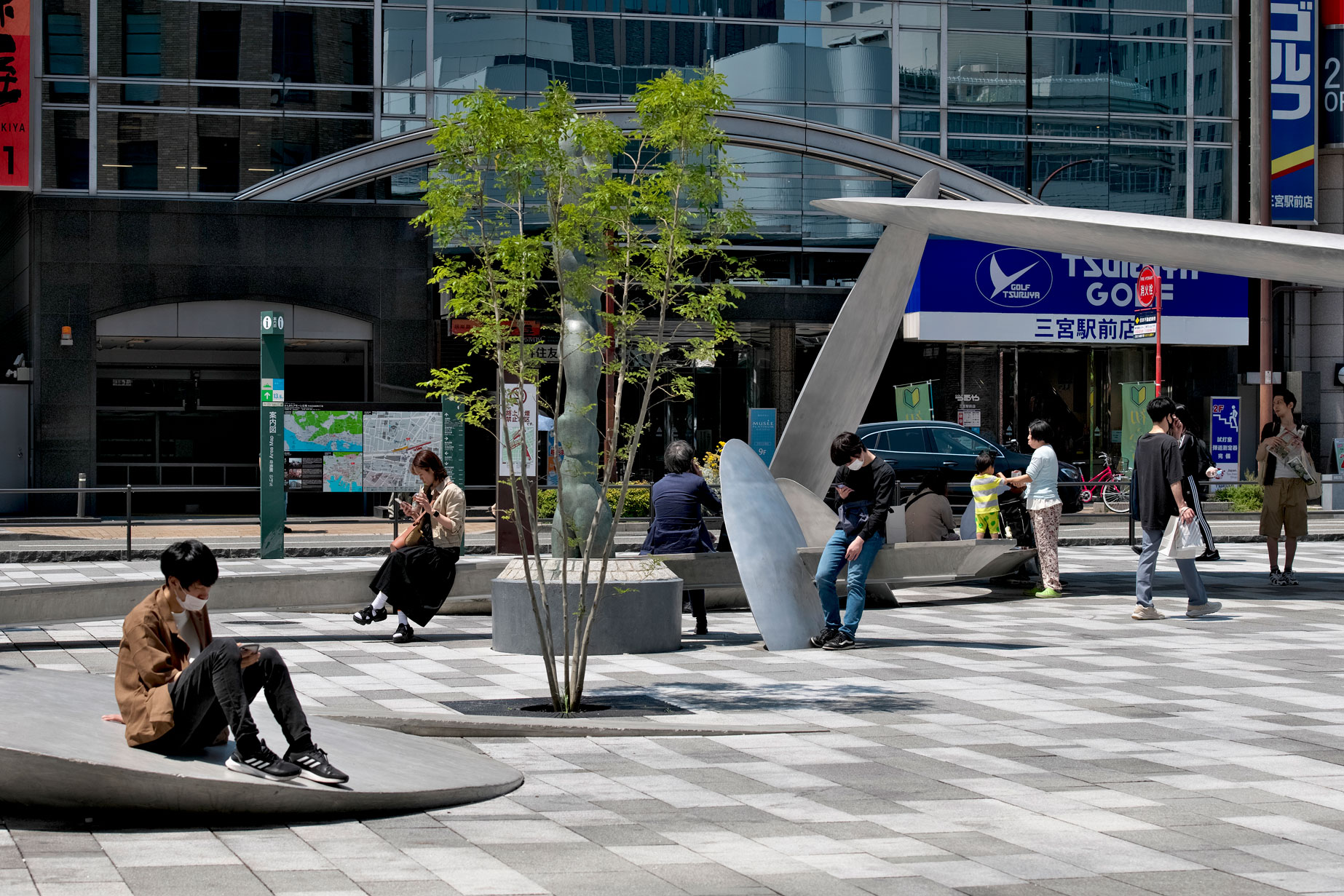 その後、日本建築学会の企画で、東京工業大学(現・東京科学大学)の伊藤亜紗教授に実際に広場に滞在していただき、「マジョリティが解体されていますね」という言葉をいただいた。たしかに、都市・社会はメタスケールの秩序によって成り立つインフラが張り巡らされているが、私は身体的なインフラをつくりたいのかもしれない。都市における大きな型をささやかに解体し、マイノリティの集合になることで、個々人が活き活きと過ごす風景が都市景観につながることをイメージしている[figs.4, 5]。