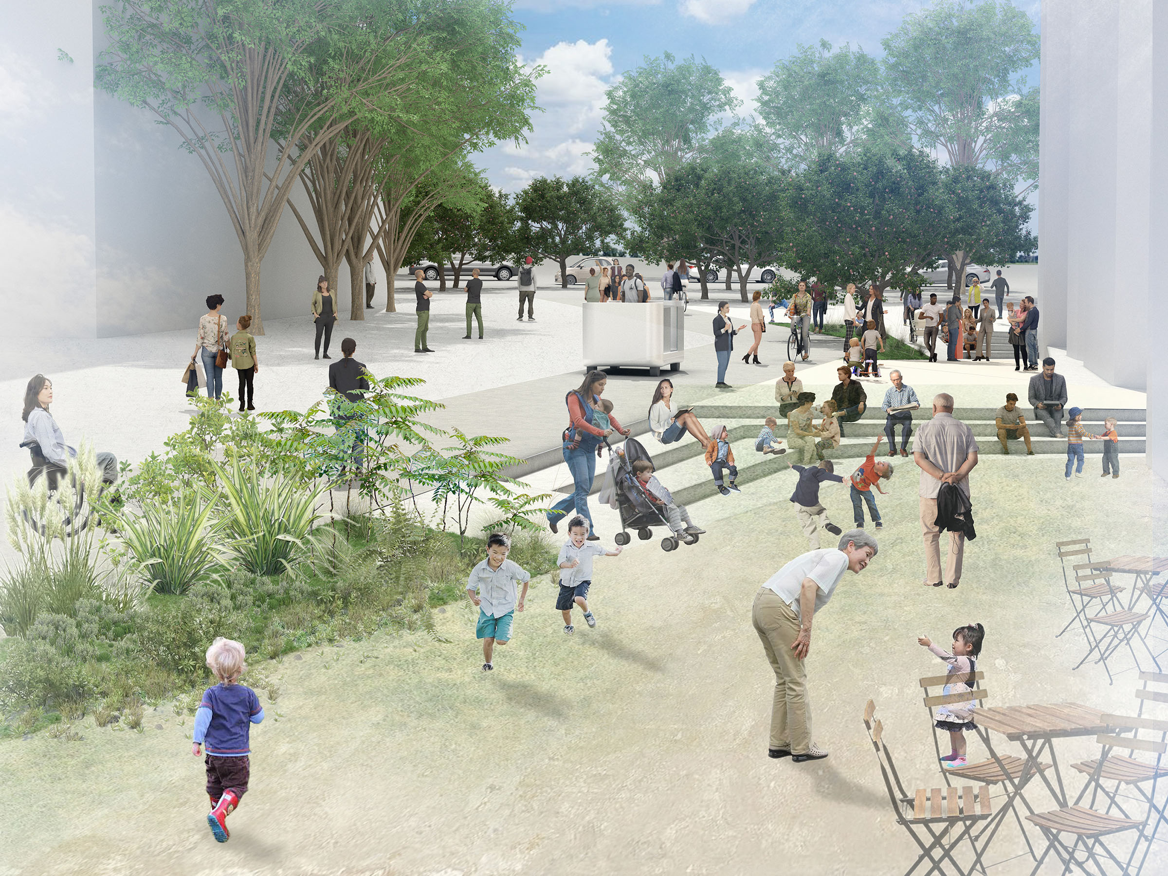 ひとつの全体に対して、異なる見方や構図が並存する、まさに日本庭園のような視点の移動によって風景が変容する空間を都市につくりたい。そうすることで、身体を伴った都市の移動体験を生み、他者との差異を理解し、寛容で共在感覚を感じられる社会を展望している。