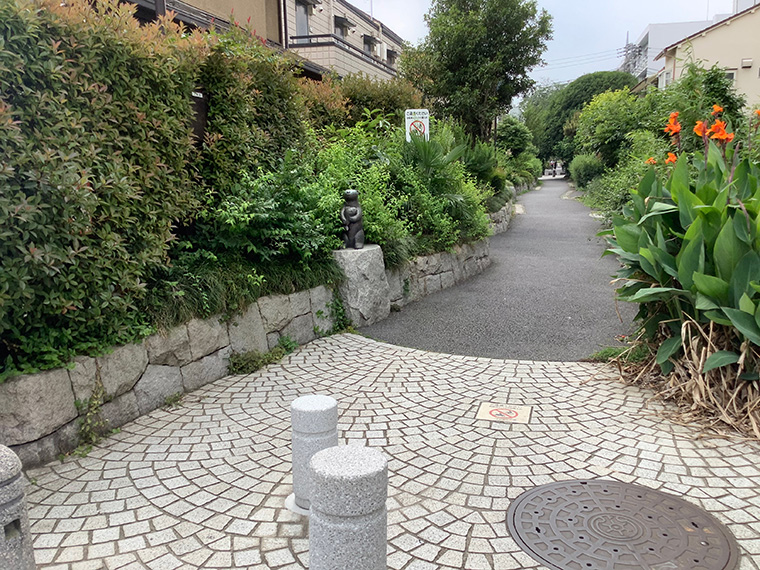 中村公園南にある、中井筋緑道から横に逸れた分流の暗渠。ここでかつての水面を想像し立ち止まった。それと知らなければ見過ごしてしまうような狭さであり、このような細道の暗渠探索もたのしい