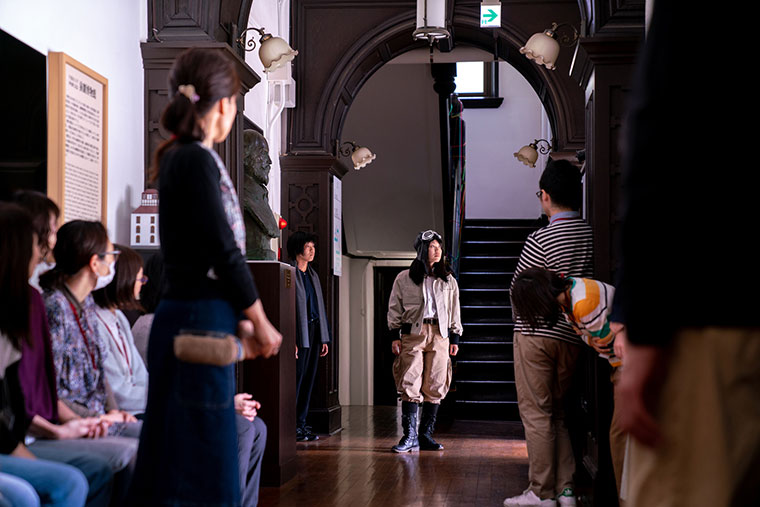 演劇を建築や空間にもち込むことは、こびりついた文脈を漂白し、異なる物語を重ねる行為でもある。枝を手にした観客の身体と記憶には、その変貌が刻まれる。建築は自らを新しい角度から映し返し、「場の再呼吸」が催促される。言葉にしようとすれば手のひらからすり抜けるほど儚い体験だが、演劇が生み出す再文脈化の作用──それは、空間や時間の枠を超えて物語を繋ぎ直し、建築に新しい意味と価値を与える営みなのだ。