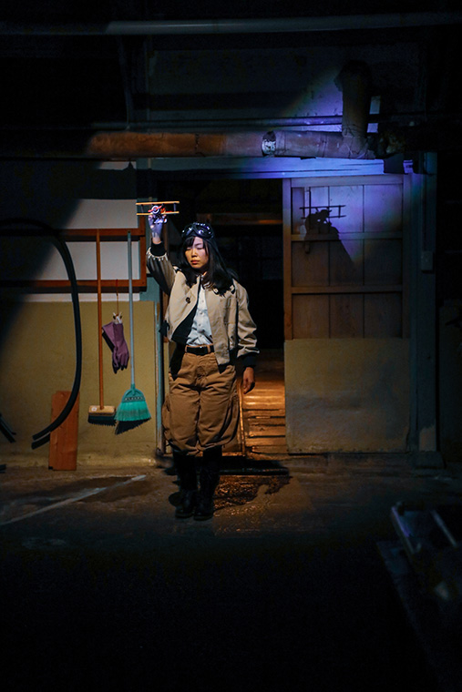 救いだったのは、そこにピーター・ブルック(イギリスの演出家)よろしく「なにもない空間」に、ものを見せるプロたちが、私の周りにいたことだった。演出家の黒田瑞仁さんと、セノグラファー(展覧会や舞台などの時間も含めた空間デザイナー)で建築家の渡辺瑞帆さんの2人であった。同じ学び舎を卒業した同窓でありながら、演劇のド中心で活躍する2人でもある。そんな彼らと3人で立ち上げたのが「家を渉る劇」というシリーズであった。納豆工場からバイオマス発電所まで、さまざまな建築物を演劇の舞台として使いながら、なんだかんだ昨年までで6回の公演を行なうにいたった。