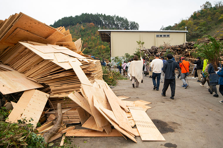 「家を渉る劇」の近作《バイオマス・マクベス》(2024)は、「森の芸術祭 晴れの国・岡山」(岡山県、会期=2024年9月28日〜11月24日)の公式プログラムとして上演された。タイトルに「バイオマス」とあるのは舞台となった岡山県真庭市が、20年ほど前の構想からはじまりバイオマス発電の事業を行なってきたことと関係している。環境問題を、いまや中小企業であっても無視できなくなっている時代において真庭市は、バイオマス発電を通して、環境問題に取り組んできた地域である。