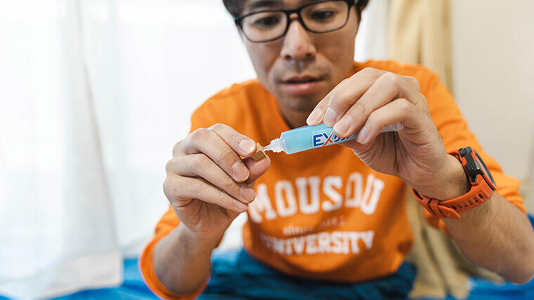 悩んだ結果、いろいろなものを買って家に戻った。EXクリアの特長としていろいろなものを接着できることが挙げられる。ガラス、金属、プラスチック、ゴム、皮革など多くのものを思うがままに接着できるのだ。