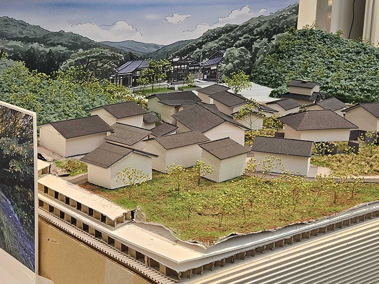 模型を眺めると、光を取り込むための開口部の抜き方、借景、動線など細やかに想定し、立体で表現されています。ポップや照明を用い、見せる工夫も伝わってきます。