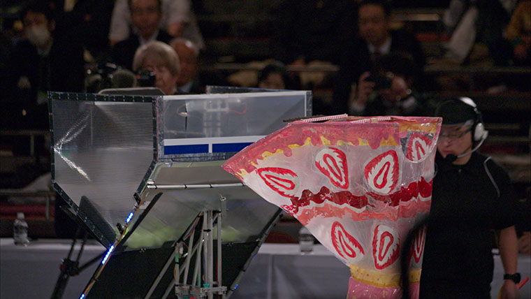 ここからは全国大会の3回戦の試合からレポートしよう。第1回戦と2回戦で惜敗した個性的なロボットについては、後編レポートと別稿の高専ロボコン振り返りレポートで詳しく紹介する。実は第2回戦から登場したシード校の和歌山高専が、敗れてしまうという大波乱が起きた。同校は地区大会から高得点を連発し、前日のリハーサルでも他チームを圧倒しており、優勝候補として名前が挙がっていただけに非常に残念な出来事だった。本番までは何が起こるかわからない、まさに魔物が棲む国技館の戦いを垣間見る思いだった。