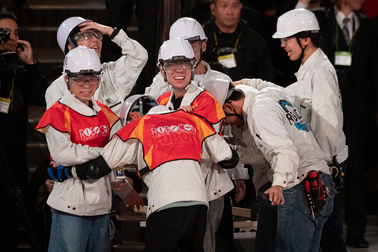 優勝した旭川高専のみなさん。優勝までの道のりは決して平坦でなかったはず。感極まった涙と笑顔がまぶしい。おめでとうございます!
