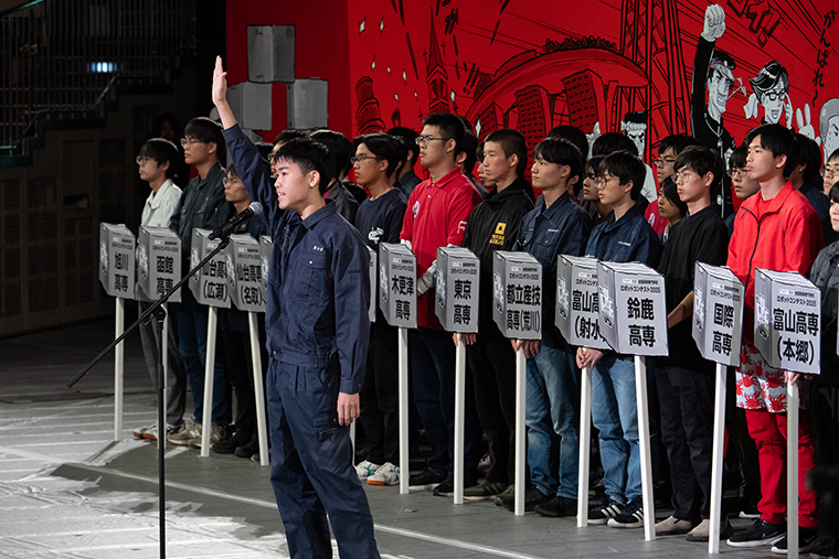 開会式の模様。選手宣誓を行ったのは呉高専 電気情報工学科4年の平田温聖(ひらたはるせ)さん。