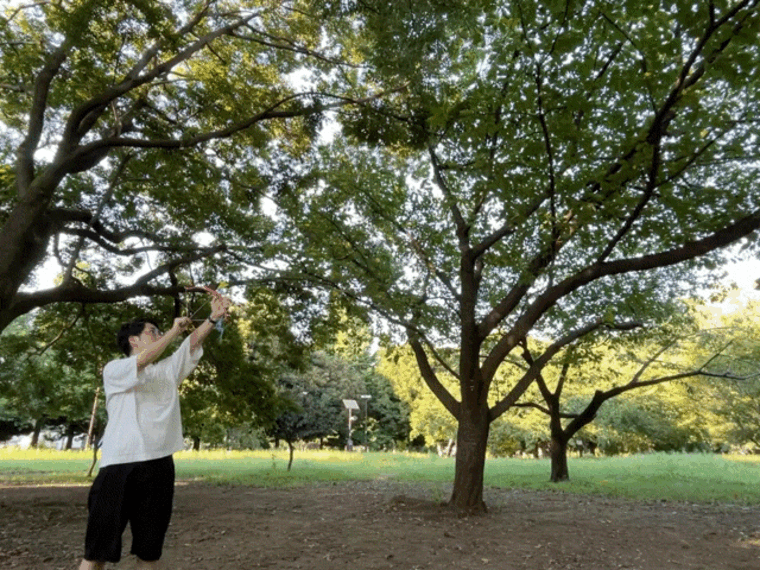 弓矢を飛ばしても危険がない広いところを求めて、近所の公園にやってきました。