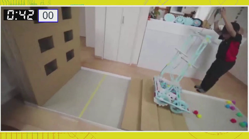 金田さんのスロープは下り部分まで覆える大型です。下り側の段差もスロープにしてしまうことで、降下時の転倒リスクを回避しました。スロープづくり→ボール回収がワンアクションで行える設計にし、更に段差エリアでのなめらかな移動を実現することで、2つのミッションをわずか10秒でクリアしてしまいました。