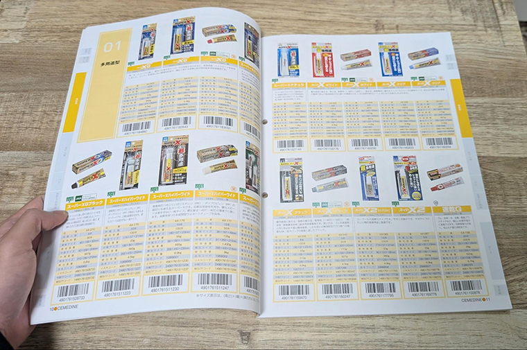 接着剤の種類が多すぎる。分厚いカタログにぎっしり乗ってやがる。もはや狂気の沙汰だ。
