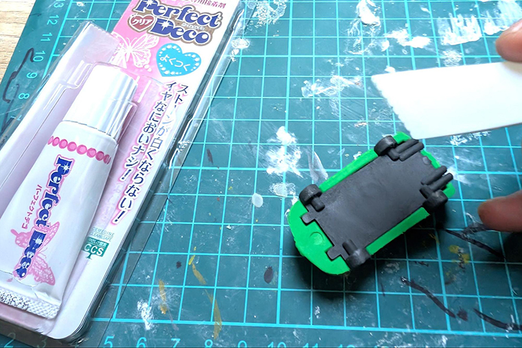 こういったデコレーション用途の接着剤、乾燥すると“弾性”が生まれるんですよね(あくまで僕の感覚だけど)。