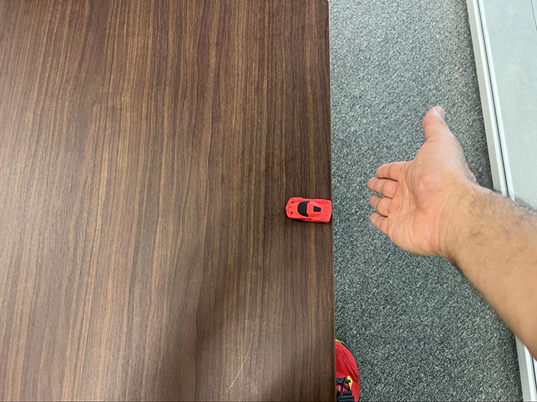 たかやが定規で弾いてぶつけても初期位置からほぼ変化なし。