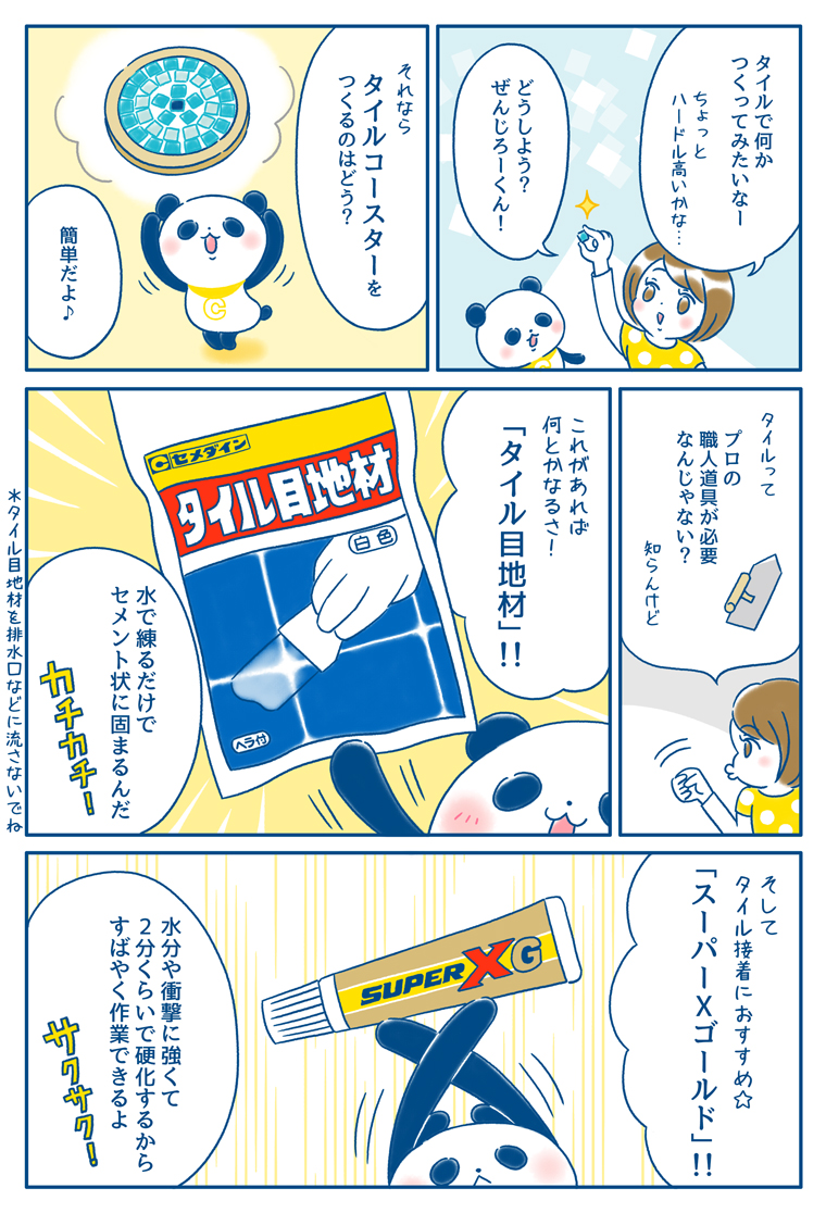 簡単!タイルコースターのつくり方「タイル目地材」+「スーパーX ゴールド」