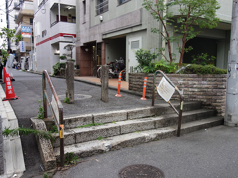 都内には2、3段しかないごく小さな階段も多数ある。坂道にすればいいのにと思ったりもするが、階段にしておけば歩行者は通れるが車は通らないので、周辺に住む人はそのままにしておきたいようだ。ここでも階段がもつ「切り分けつつ繋ぐ」という特徴がある意味生かされている。