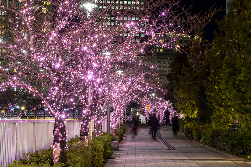 「目黒川みんなのイルミネーション」は、大崎〜五反田間の目黒川沿い約2.2km(両岸合計総延長)の地域の遊歩道を明るく照らす、地域の地域によるセルフビルドな「100%みんなの」イベントです。目黒川沿いの樹木をLEDライトで装飾し、冬に咲き光る桜の並木道をつくります。