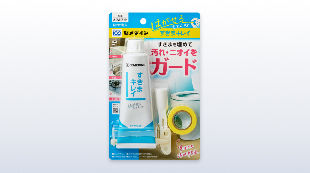 「すきまキレイ」は、その名の通り、トイレやコンロ周り、シンク周り、浴槽エプロンなどの隙間を埋めることで、匂いや汚れをガードする充てん材です。手で簡単にはがせるため、打ち替えも簡単に行えます。私も自宅で使用していますが、おかげで引っ越しから1年経っても、キッチンは綺麗なまま。とても助かっています。隙間の掃除に悩んでいるという方は、ぜひ一度お試しください。